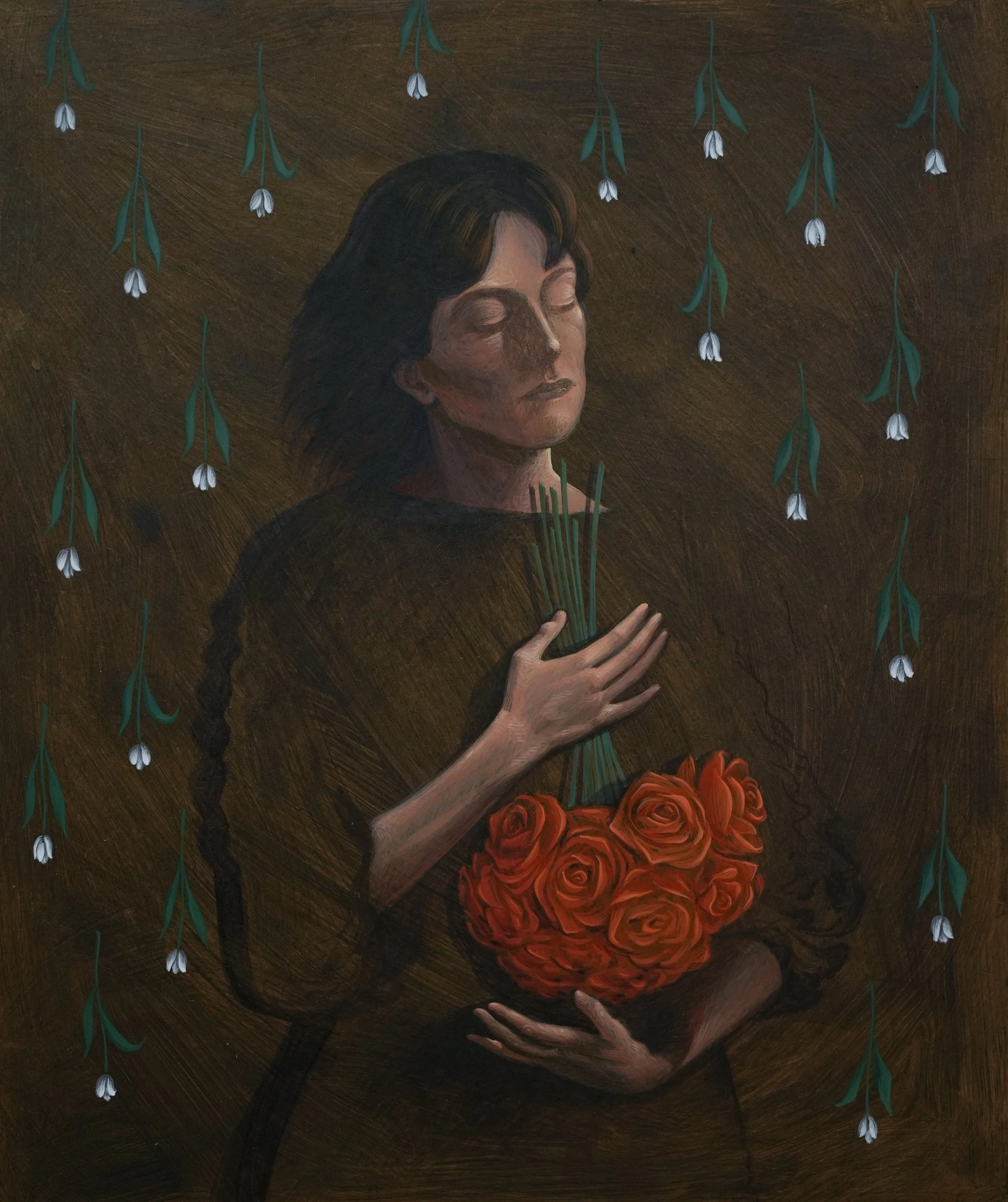A contemporary poetic observation about embracing beauty despite its transienceSerinity, 45 × 35 cm , mixt technique on linen